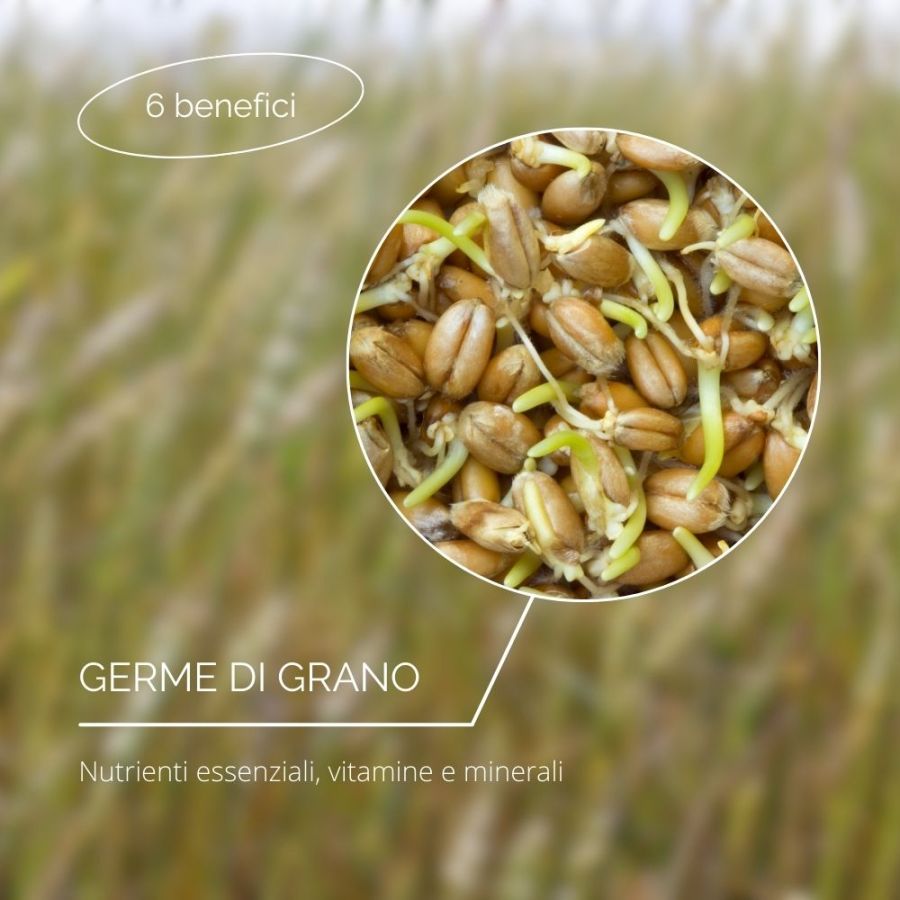 Le vitamine del gruppo B e i minerali contenuti nel germe di grano favoriscono la crescita sana e vigorosa dei capelli, stimolando il follicolo pilifero e combattendo la caduta eccessiva.