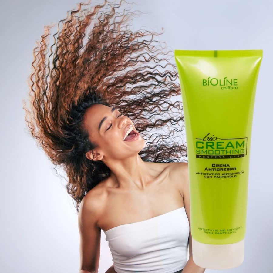 La nostra crema anticrespo "Bio Line" è la soluzione ideale per chi ha capelli mossi, ricci, crespi o permanentati. Questa formula avanzata non solo protegge i tuoi capelli dall'umidità e dal calore, ma li rende anche lisci e gestibili, facilitando la piega a casa.
