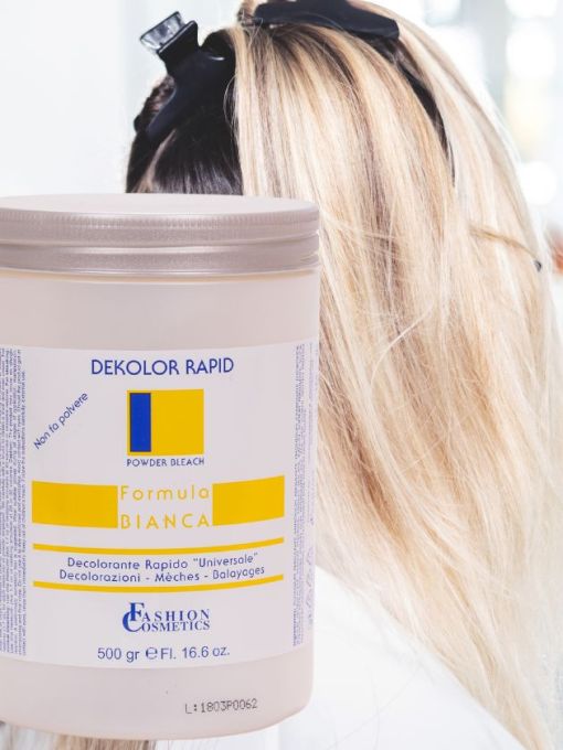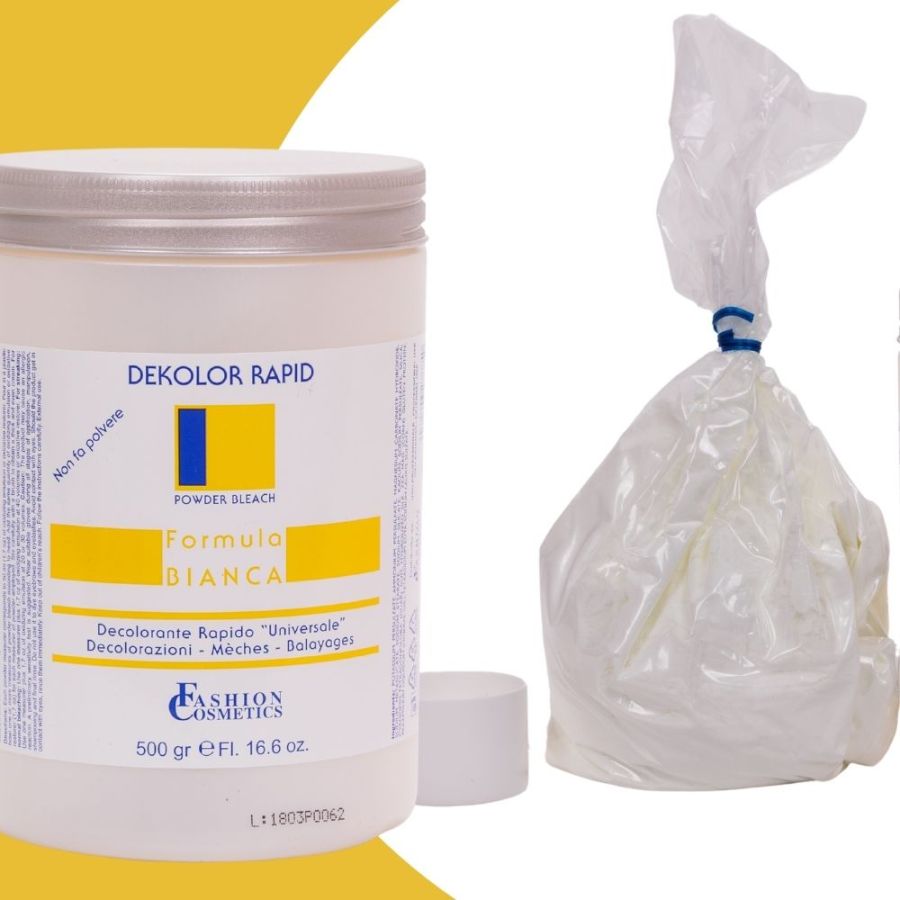 Il decolorante capelli Formula Bianca in polvere non volatile offre una schiaritura potente e uniforme fino a 7 toni, senza dispersione di polvere durante l'applicazione, ideale per ottenere biondi luminosi e risultati impeccabili.